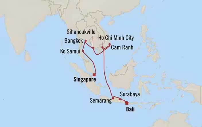 Aboard Oceania Riviera, sail from Bali to Singapore, discovering the vibrant cities, tropical coastlines, and rich cultures of Indonesia, Vietnam, Cambodia and Thailand. Enjoy refined...