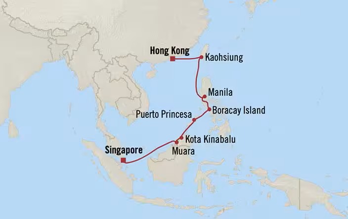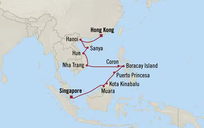 This journey offers a refined luxury cruise experience across Asia, sailing from Hong Kong to Singapore. Along the way, guests will explore a diverse collection...